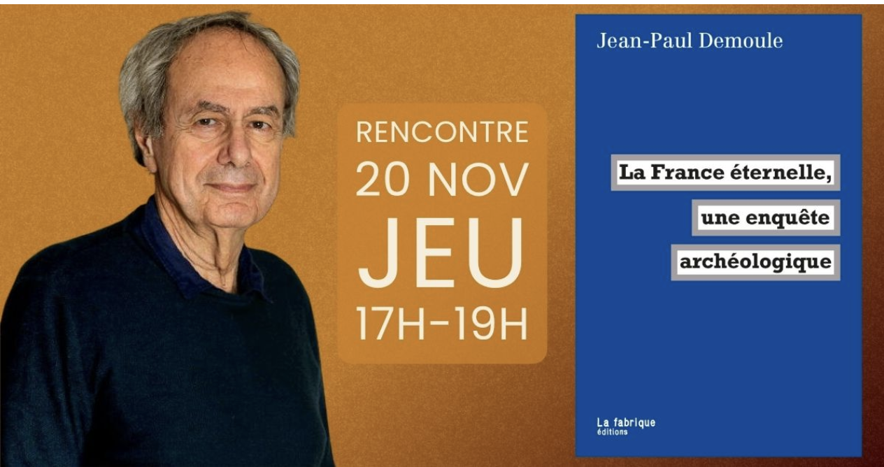 Discussion autour de La France éternelle, une enquête archéologique avec Jean-Paul Demoule jeudi 20 novembre 2025 à 17h à la librairie Les Volcans (80 Bd François Mitterrand, 63000 Clermont-Ferrand).