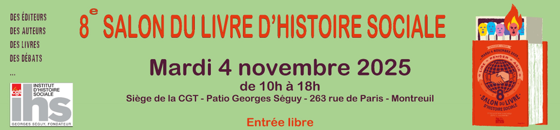 La fabrique participe à la 8e édition du Salon du livre d’histoire sociale au siège de la CGT – Patio Charles Séguy ( 263 rue de Paris, 93100 Montreuil) mardi 4 novembre 2025 de 10h à 18h.